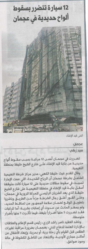 12 سيارة تتضرر بسقوط ألواح حديدية في عجمان