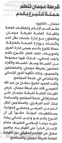 شرطة عجمان تنظم حملة للتبرع بالدم