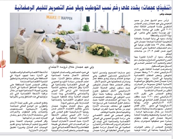 تنفيذي عجمان يشدد على رفع نسب التوطين ويقر منع التصريح للخيم الرمضانية