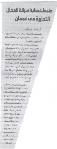 ضبط عصابة سرقة المحال التجارية في عجمان