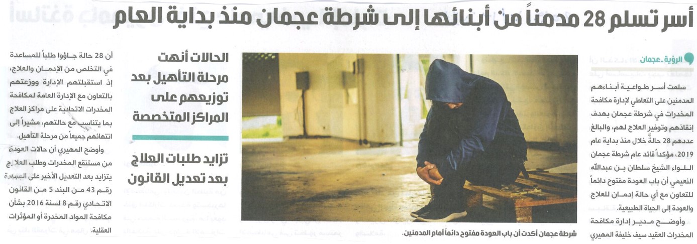 أسرتسلم 28 مدمنا من أبنائها إلى شرطة عجمان منذ بداية العام