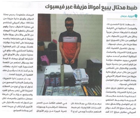 ضبط محتال يبيع أموالا مزيفة عبر الفيسبوك