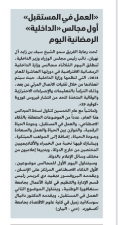 العمل في المستقبل اول مجالس الداخلية الرمضانية اليوم