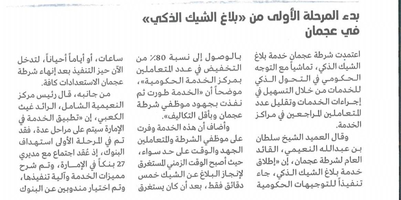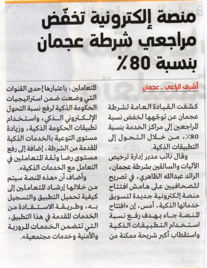 منصة إلكترونية تخفض مراجعي شرطة عجمان بنسبة 80%