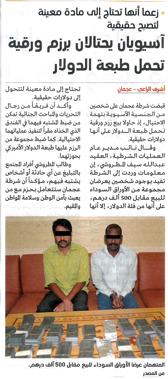 آسيويان يحتالان برزم ورقية تحمل طبعة الدولار