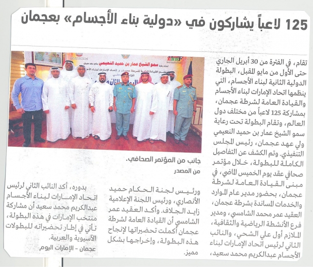 125 لاعبا يشاركون في دولية بناء الأجسام بعجمان