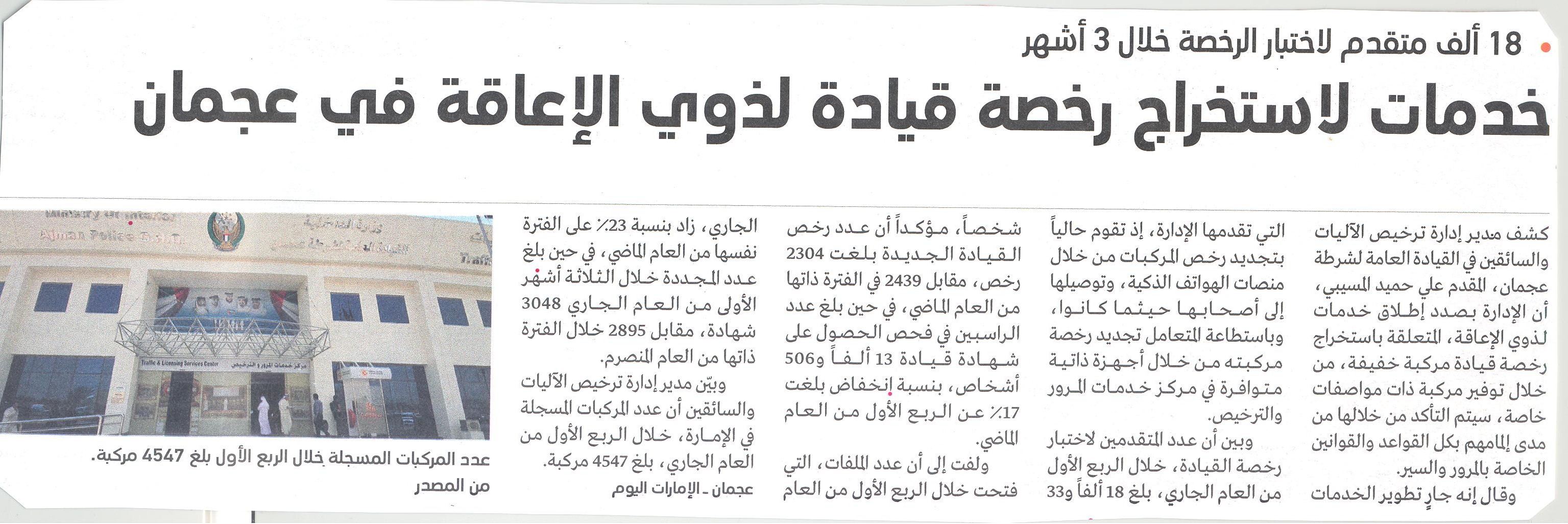 خدمات لاستخراج رخصة قيادة لذوي الإعاقة في عجمان