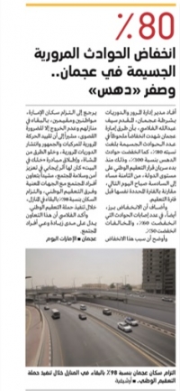 80% انخفاض الحوادث المرورية الجسيمة في عجمان و صفر دهس