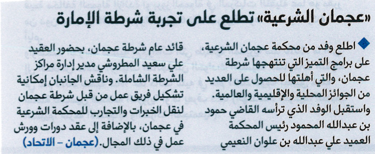 عجمان الشرعية تطلع على تجربة شرطة الإمارة