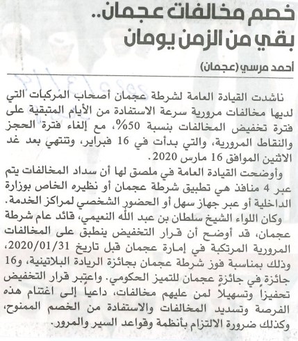 دفع 30 ألف مخالفة مرورية في اسبوع بعجمان