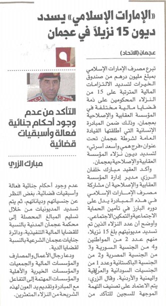 الامارات الاسلامي يسدد ديون نزيلاً في عجمان