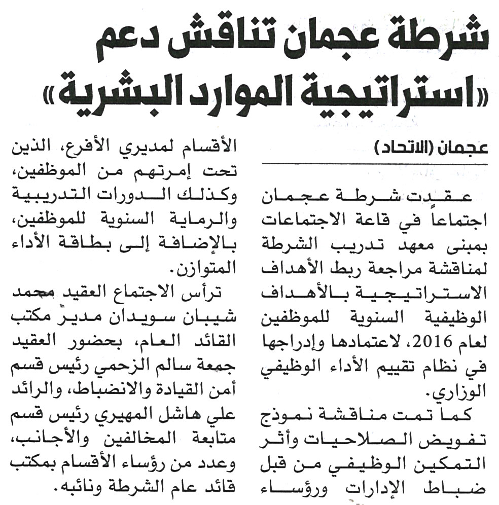 شرطة عجمان تناقش دعم استراتيجية الموارد البشرية