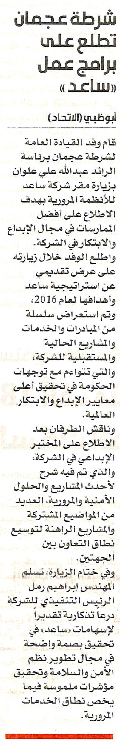 شرطة عجمان تطلع على برامج عمل ساعد