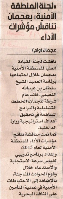 لجنة المنطقة الأمنية بعجمان تناقش مؤشرات الأداء
